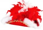 Dreispitz aus Karnevalsfilz (Polyester) mit Marabubesatz, Silber- oder Goldborte (Bitte auswählen) mit rot-weißem Chandellenboa Federnest.